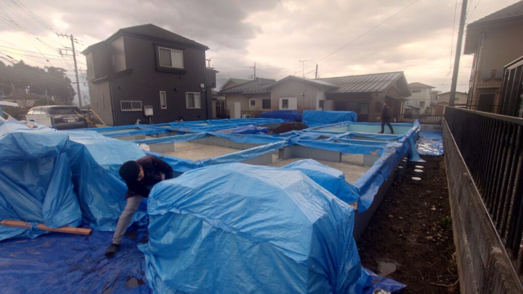 雨は大敵!ホウ酸処理と上棟準備、社員大工の神対応