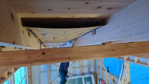 雨の中でも、屋根には防水紙が貼られているので、建物の中には、雨が入ってきません。