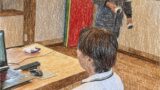 木の表面を叩いてワザと凹まし、そこに板同士が接合する際、水で濡らすと、後で木が水分で膨らみ、突き付け部分が、吸い付くように、ピッタリくっつきます。