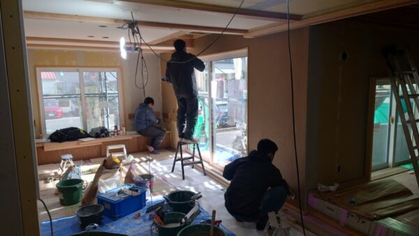 富士市の現場では、珪藻土塗りが続いてます。