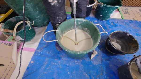 寒いこの時期、水を使って珪藻土を練るので、手が辛い…。