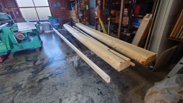 以前、社長と材木屋さんに足を運び、選んだ丸太が製材され、丸太梁変わりました。