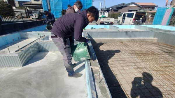 社員でしっかりと施工し、基礎も完成しました。