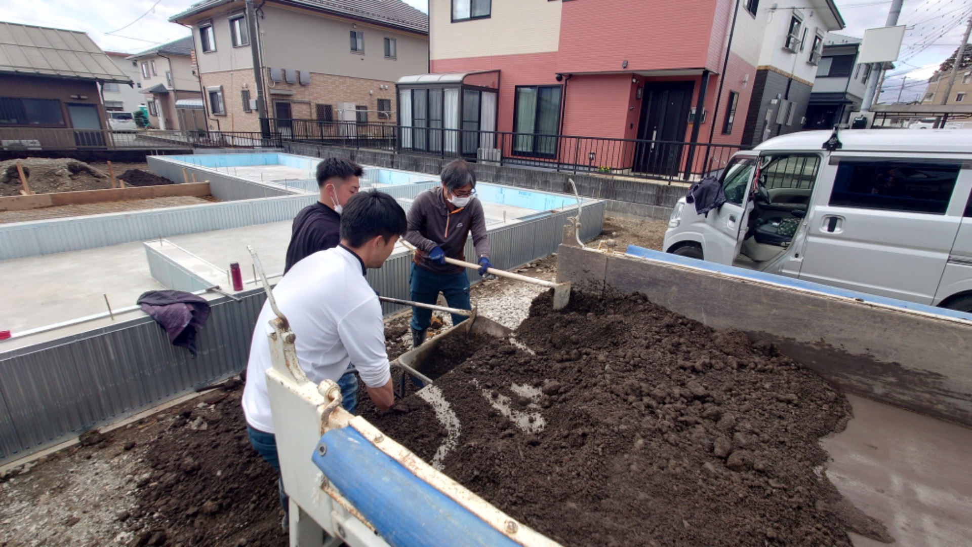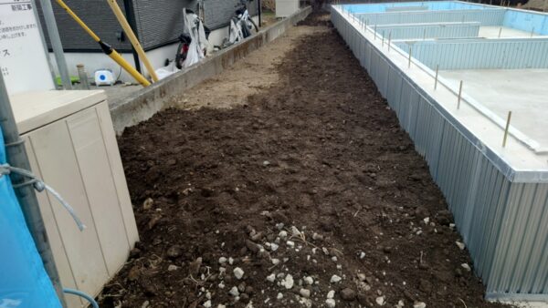 基礎工事に伴い地面を掘り下げたので、そこを埋め戻します。
