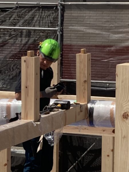 事前に加工した、丸太梁も無事納まって、僕も安堵してます。