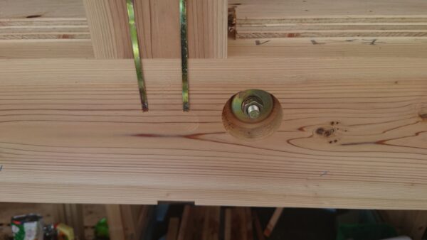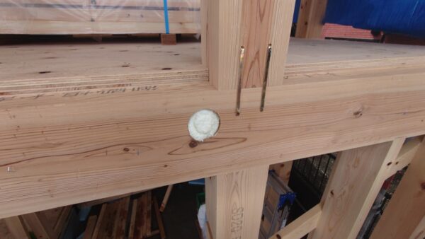 上棟時に耐力壁(地震に耐える壁)も施工するのですが、雨が降ったので、後施工としました。