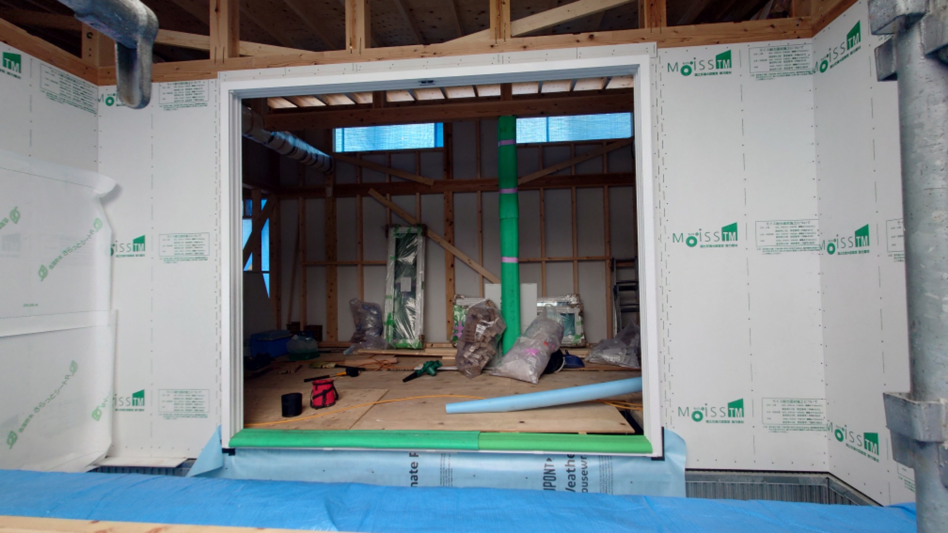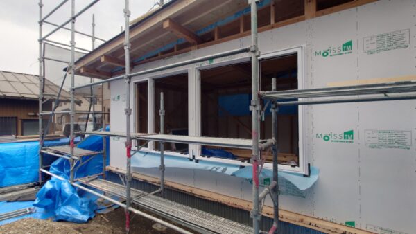 上棟後、雨風を防ぐ為に、サッシを取付けます。