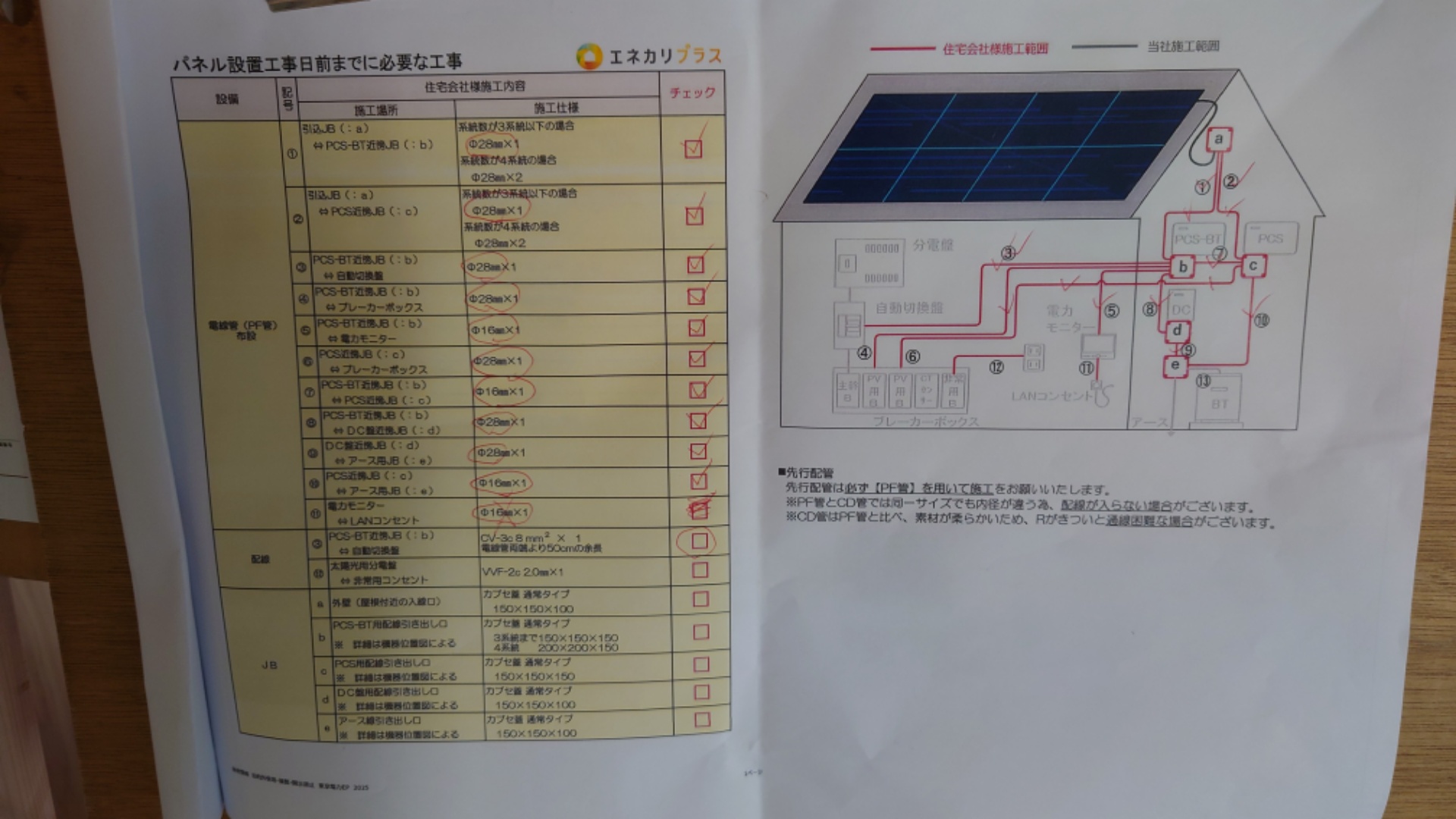 ソーラーパネルで発電した電気を、家の中に取り入れ、使えるようにする、言葉で書くと簡単ですが、実際は複雑な配線、電気職人の苦労があるのです。