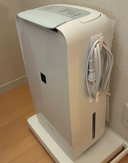 除湿機のコードが床にだらーんとしていて