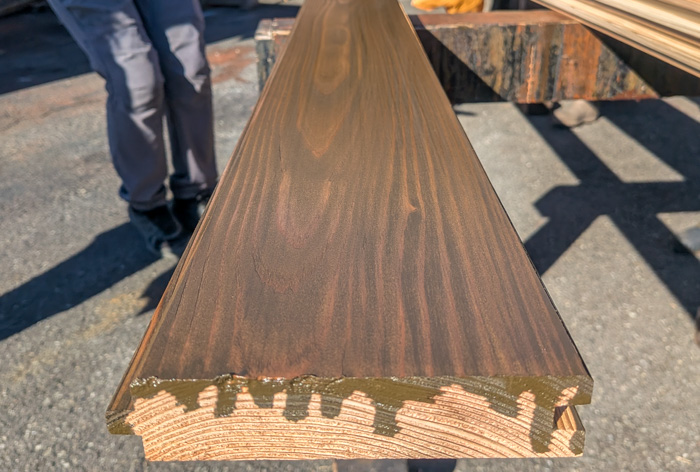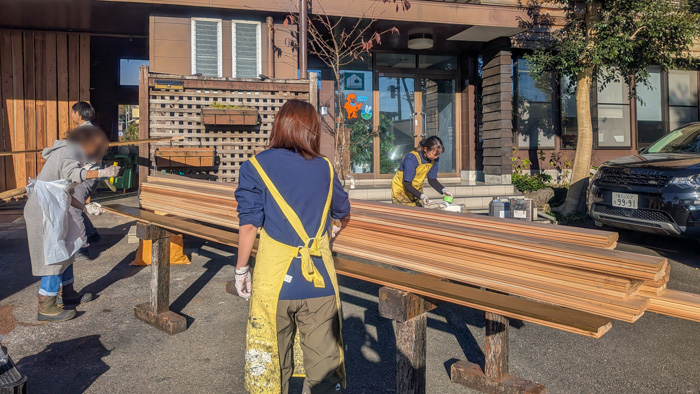 杉の床板を塗っていました