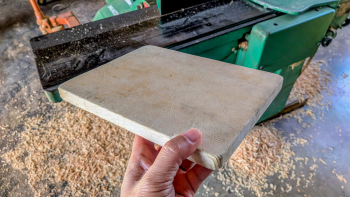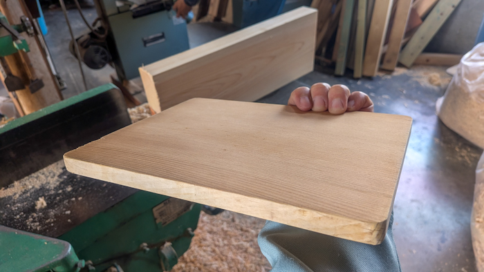 私と大工で、まな板削りや