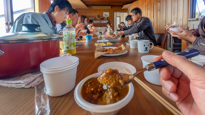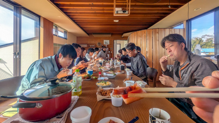 お昼はみんなでお客様に頂いた