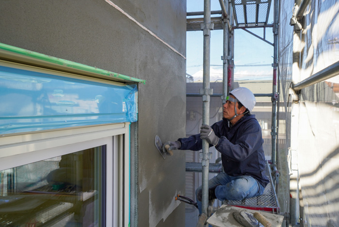 現場では職人達が寒空のもと