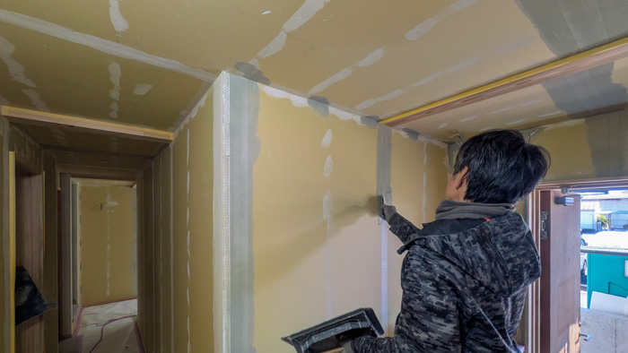 社員大工たちの珪藻土塗り