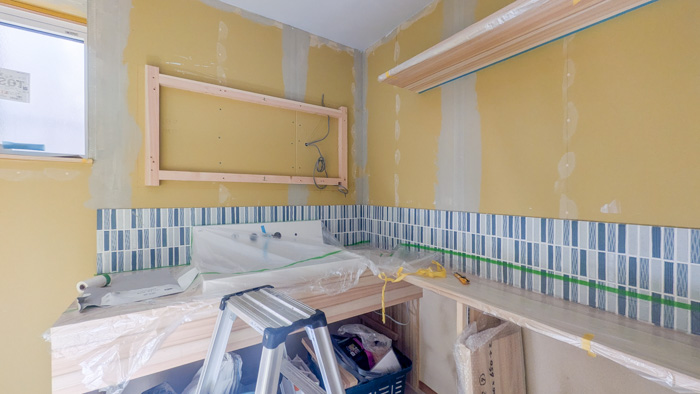黙々とタイルの施工中