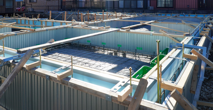 コンクリートの打設中の基礎