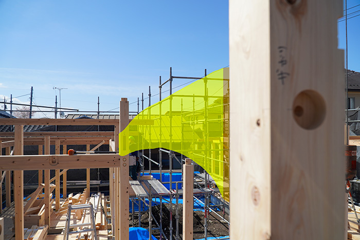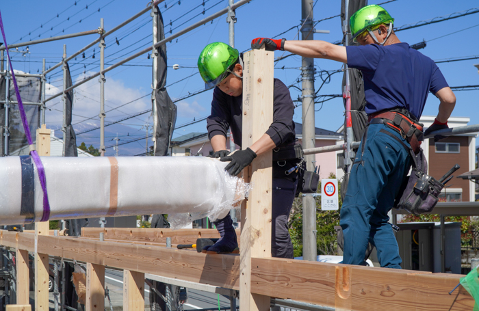 現場監督の城内が、梁が入り