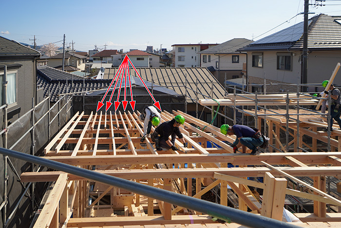 社員大工達が「垂木(たるき)」
